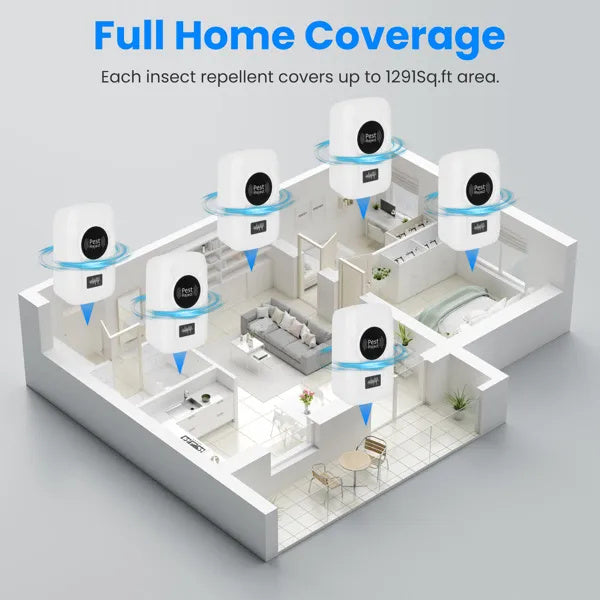 - Full Home Coverage: Come with 6 packs, ideal for protecting your entire home from pests and mice. Each indoor bug repellent covers up to 1291Sq.ft area. One repeller for one room, no more worries about annoying pests!